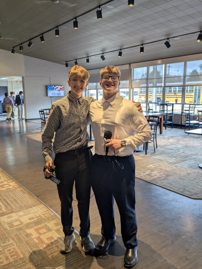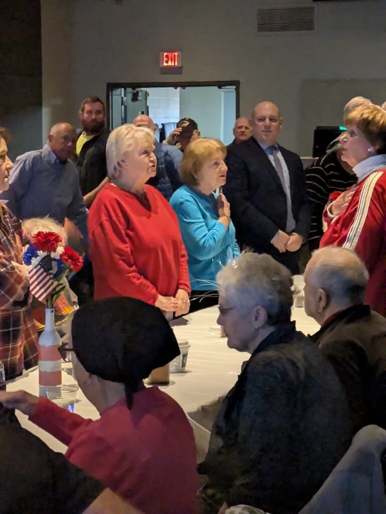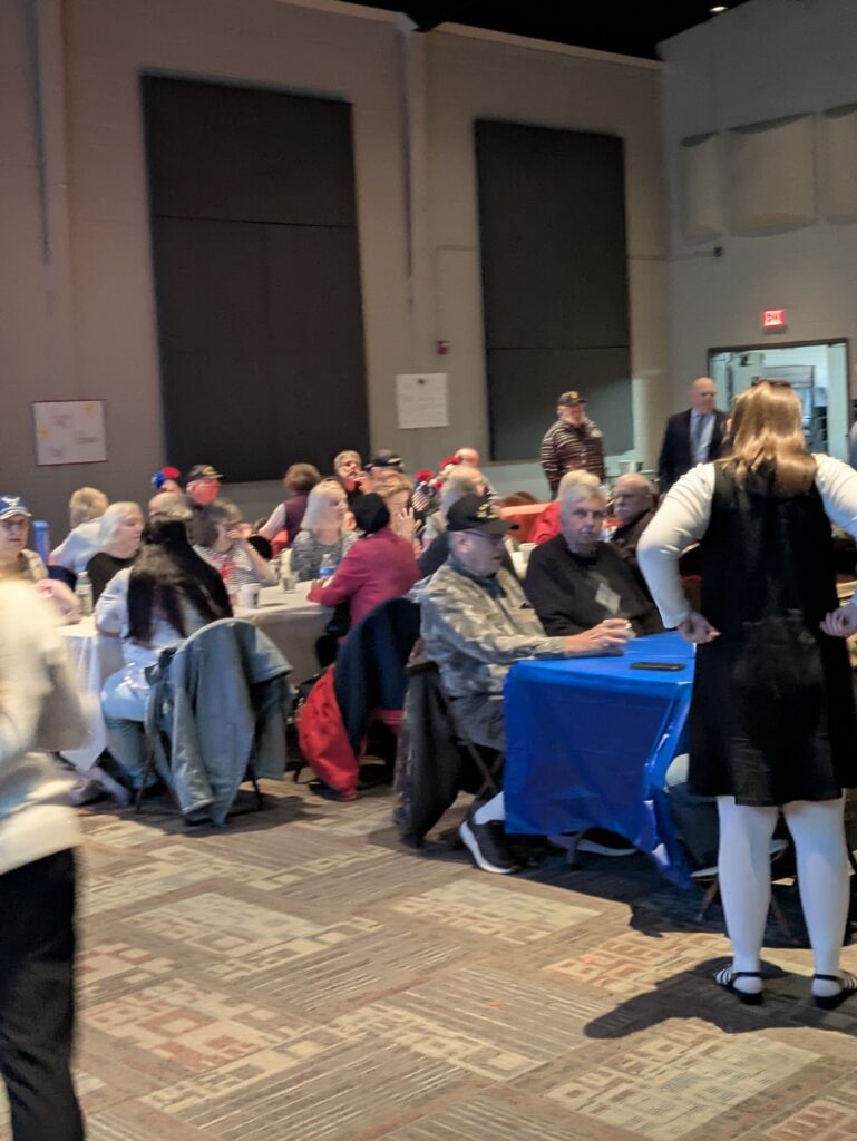 Students were active throughout the event, greeting guests at the door, serving drinks, helping veterans to their seats, and delivering meals to those who needed assistance. A prayer was offered before lunch, followed by a group performance of “The Star-Spangled Banner,” which filled the room with patriotic energy. This year’s luncheon included approximately 78 veterans and 49 students who volunteered their time to serve and honor those who served their country. The oldest veteran in attendance was 98 years old.